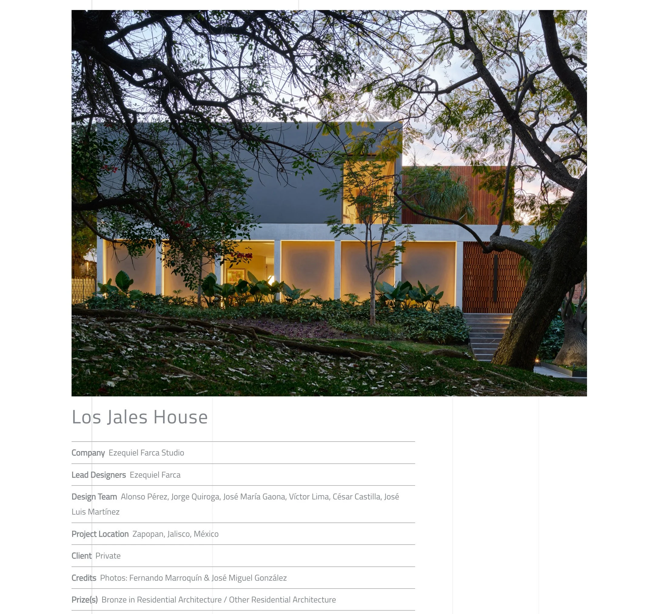 Bronze Medal to Los Jales Feb 4 Written By Guillermo Ortiz Los Jales House win the International Design Awards IDA 2024 Guillermo Ortiz